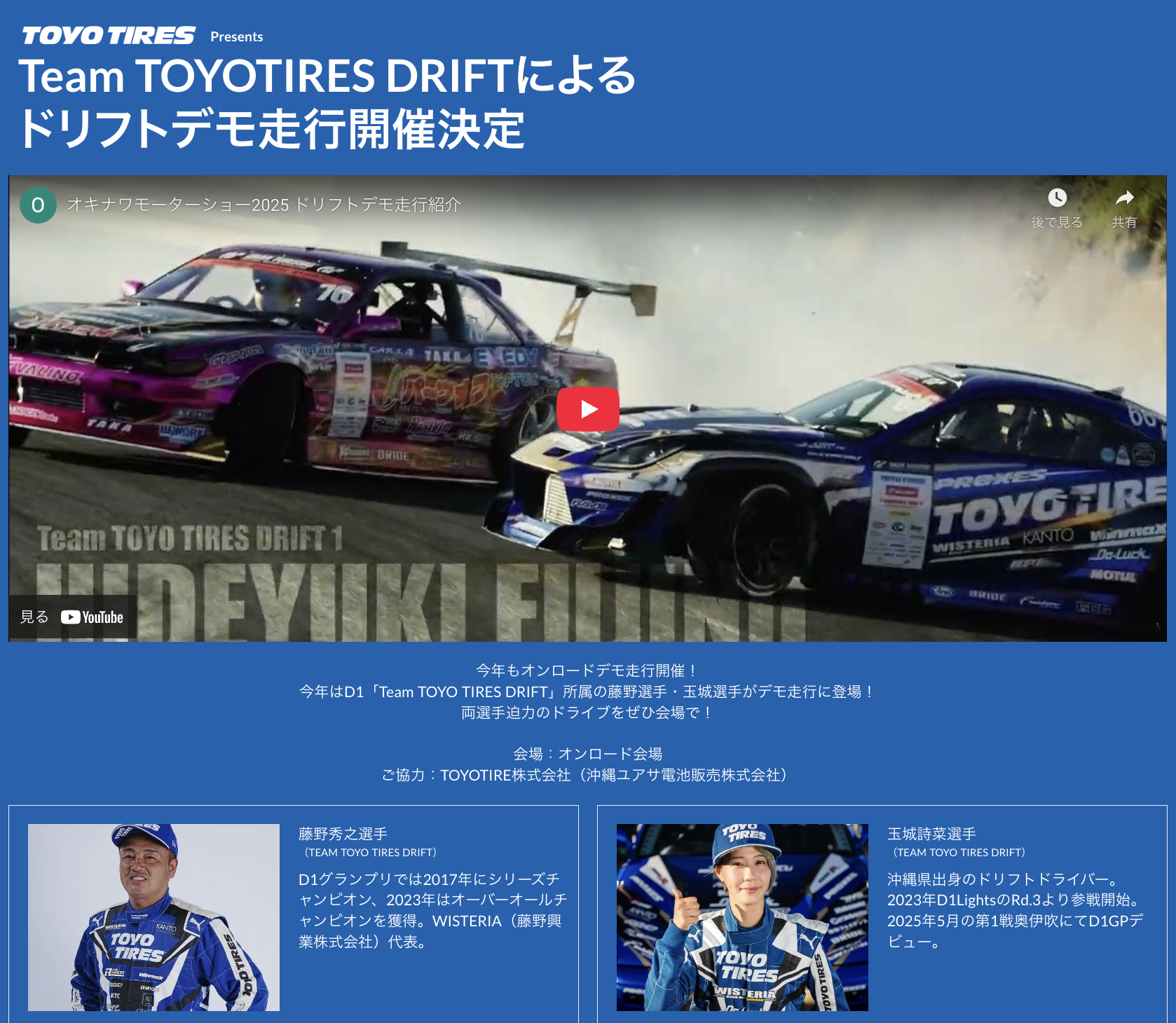 主催者は「見る・乗る・触れる・楽しむ」をキーワードに、沖縄ならではの空間で来場者との“新たな出会い”を提供するとしています。