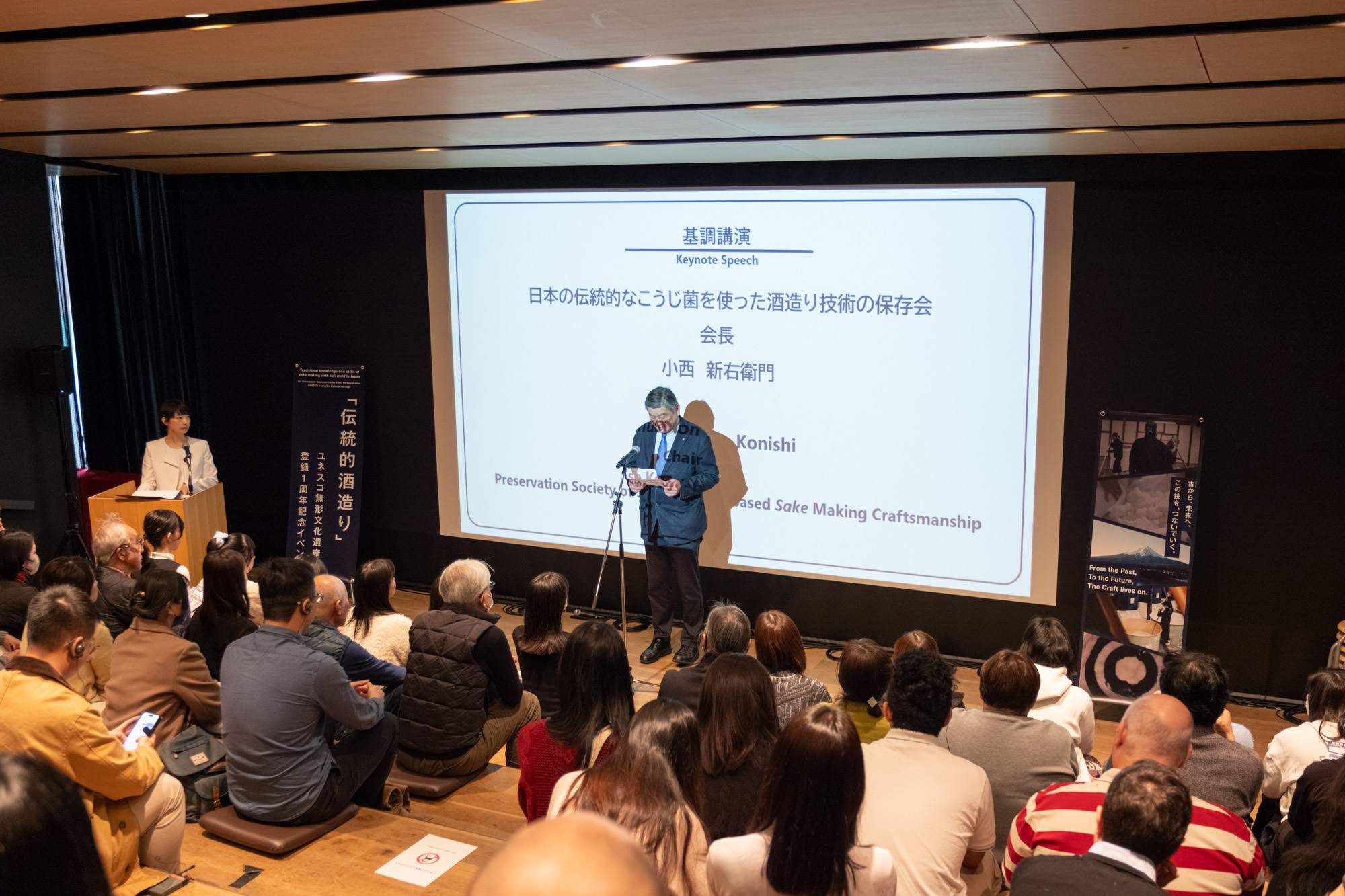 中央会副会長であり日本の伝統的なこうじ菌を使った酒造り技術の保存会会長の小西新右衛門氏は、登録1年を経て国内外での「伝統的酒造り」への関心が高まったことを評価。500年以上前に確立した杜氏や蔵人による技術は製造法のみならず、祭礼や人と人をつなぐ社会文化活動として根付いています。小西氏は伝承の重要性を説くとともに、新しい感性による酒造りや多様性を尊重しつつ、次世代の活躍の場が広がることを期待しています。