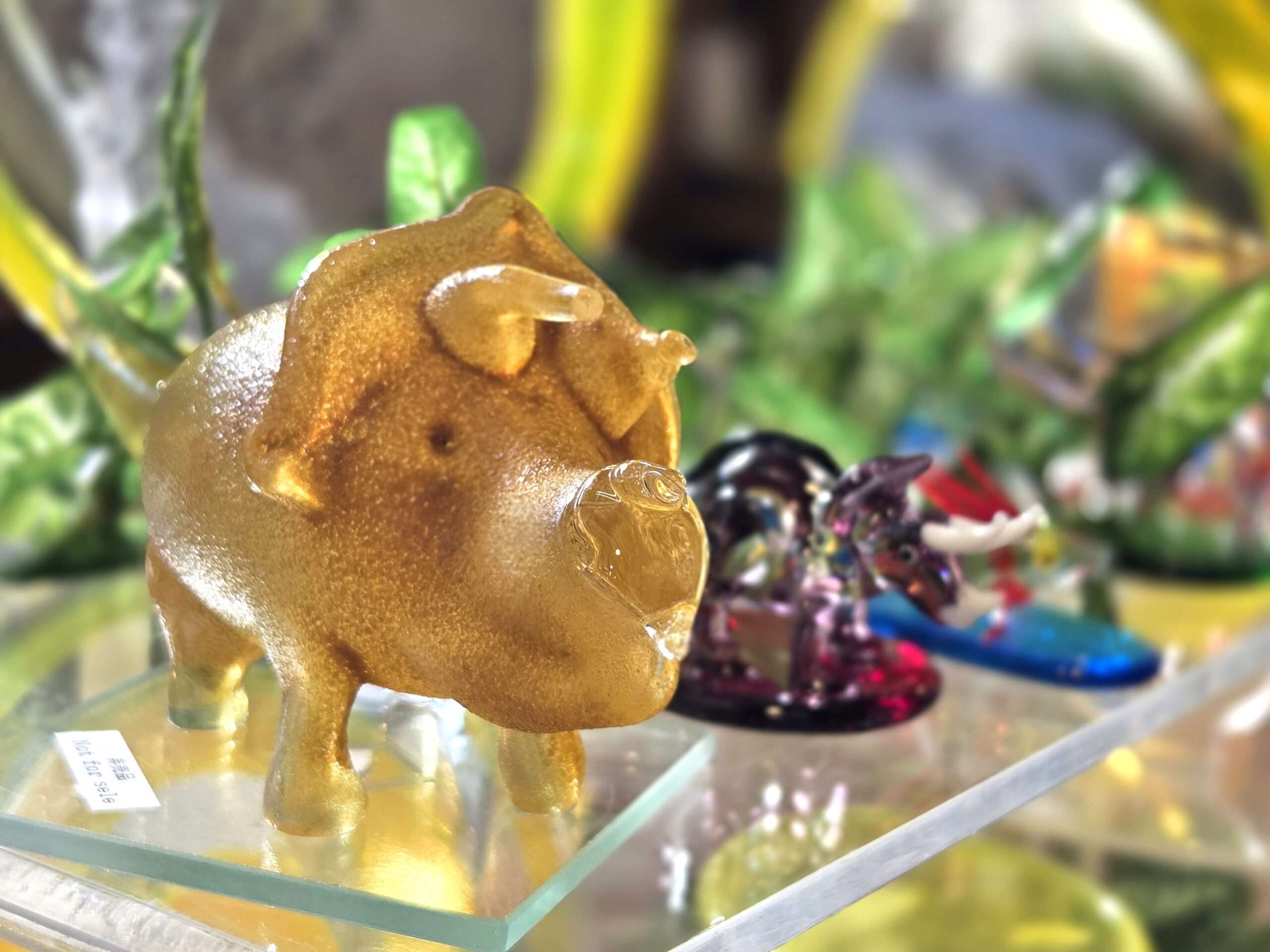 特設コーナーには、グラスの隣に小さなガラス製恐竜オブジェたちも集合。表情や色合いの異なるミニチュア恐竜は一部購入も可能で、「自分だけの一匹」を選ぶ楽しさがあります(※一部商品は非売品)。旅の途中で、思わず時間を忘れて見入ってしまいそうなコーナーです。