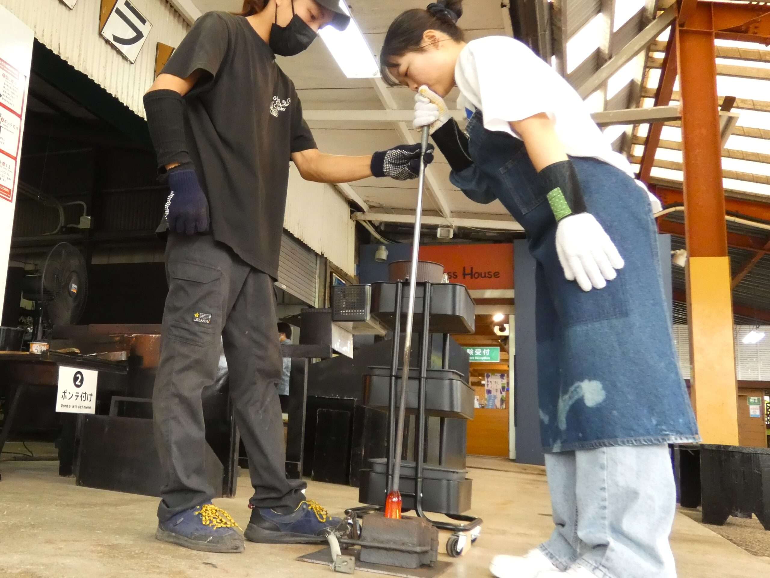 開発にあたっては、沖縄県工芸士に認定された職人が“手になじむ”形を追求。どのサイズが使いやすいか、持ち手は必要かなど細かなバランスを何度も試作しながらかたちにしていったといいます。小さな手にもフィットするサイズ感と、日常使いしやすい安定感。その両方を叶えるために生まれたのが、この「恐竜くん」シリーズです。