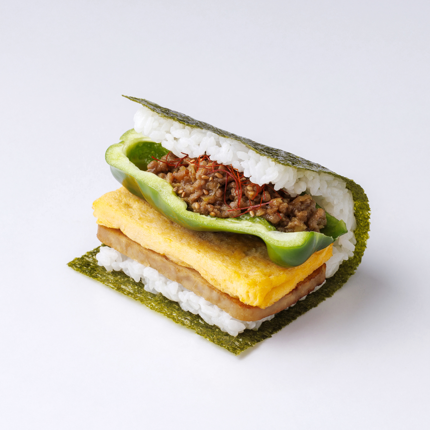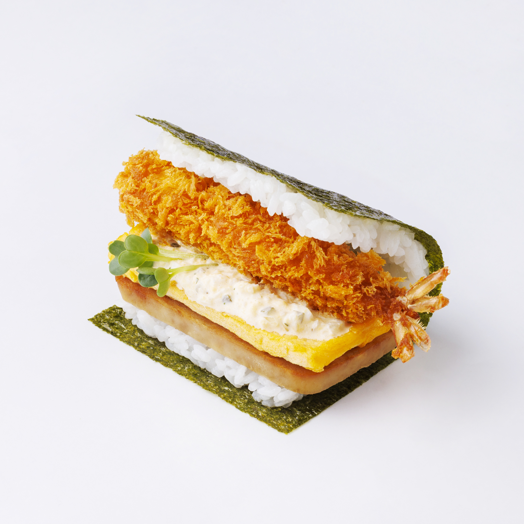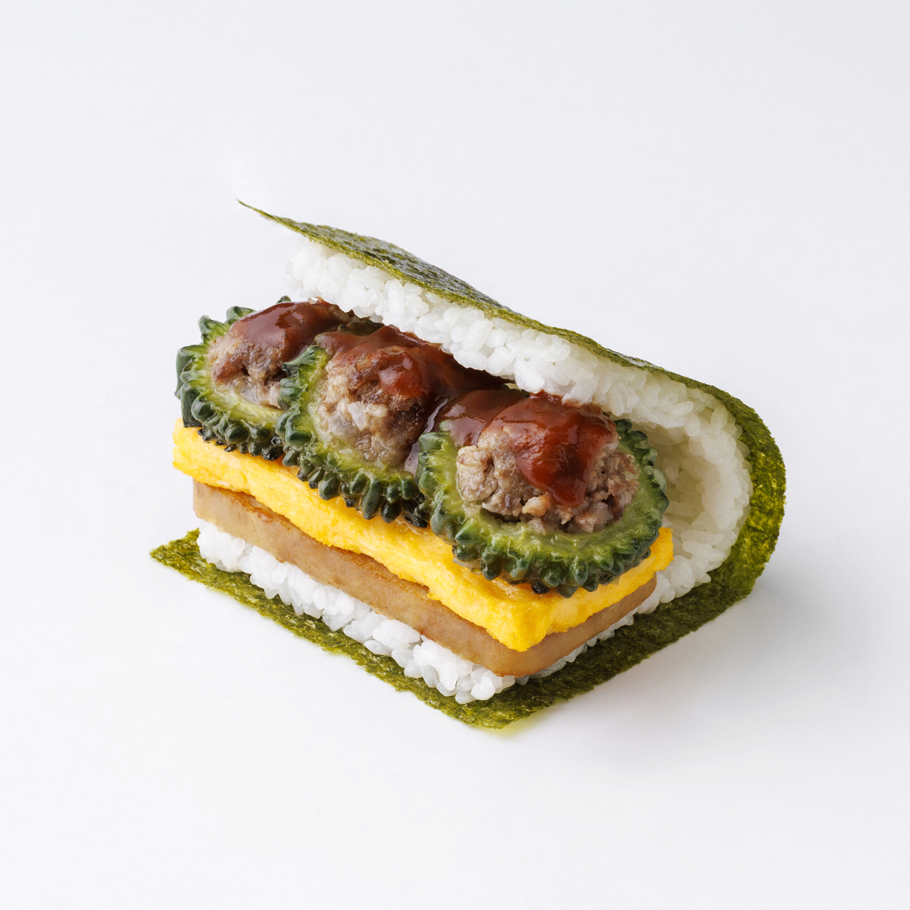 ツナマヨは優しい味わいでポーたまと好相性。ポーたま茶は奥八女産の希少品種を使い、甘みと旨みを引き出しました。梅は大粒の梅干しでさっぱり、エビタルはシークヮーサー香る自家製タルタルへと進化。各地の限定品は、やんばるハーブ鶏の照り焼きやアーサ磯辺揚げ、もとぶ牛×ゴーヤなど、その街ならではの一品がそろいます。