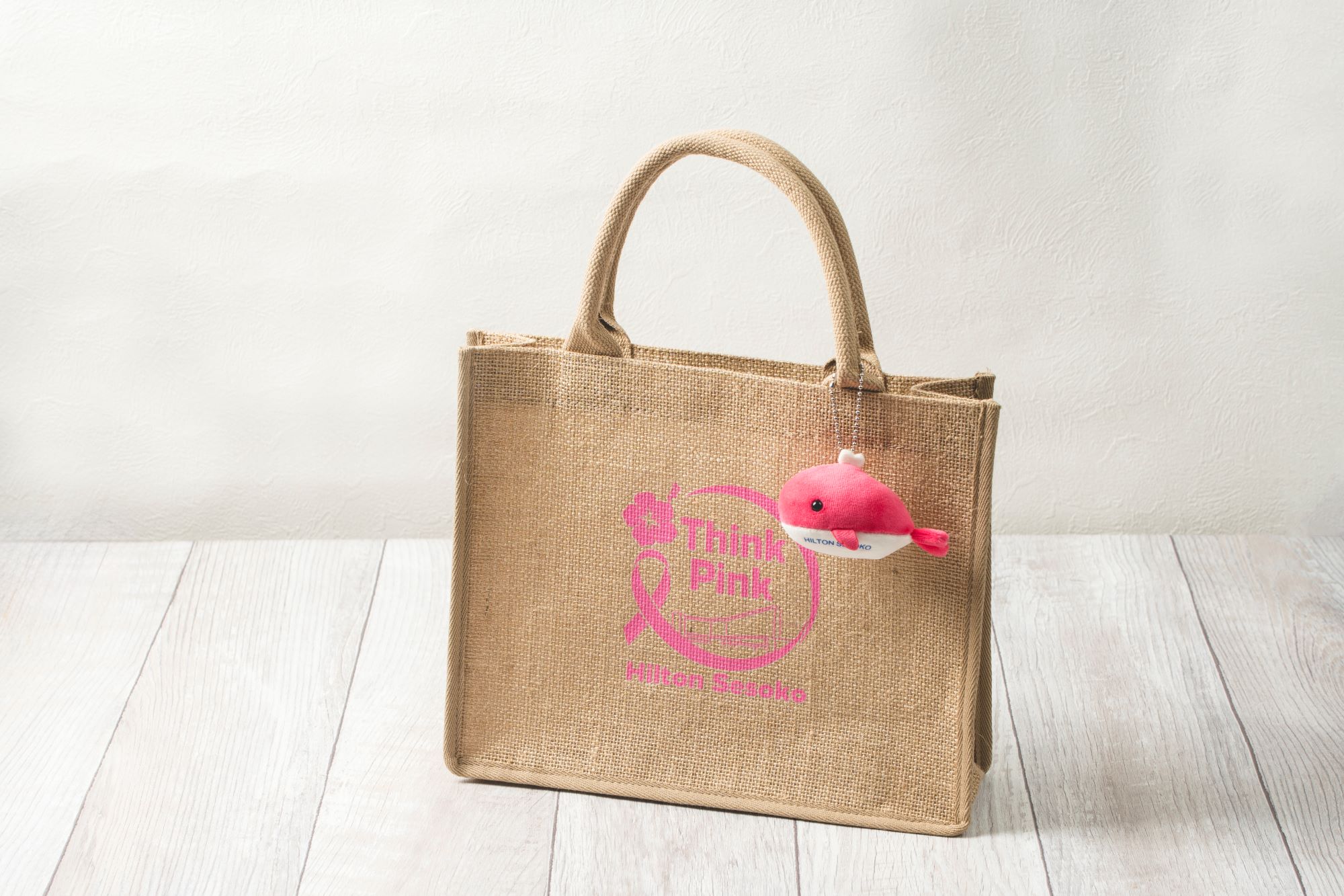 注目企画は4つです。まず、各ホテルのフロントにピンクのグラデーションが印象的なピンクリボンモニュメントを展示。次に、エコ素材ジュート生地の特製ビーチバッグ(1,500円・税込)を販売し、売上の一部を「ほほえみ基金」に寄付します。さらに募金箱を設置し、来館者からの寄付も受け付けます。加えて10月18日(土)には、ダブルツリーbyヒルトン那覇首里城で乳腺専門医を招いた社内向け「ピンクリボンセミナー」を開催し、従業員の理解促進にも取り組みます。