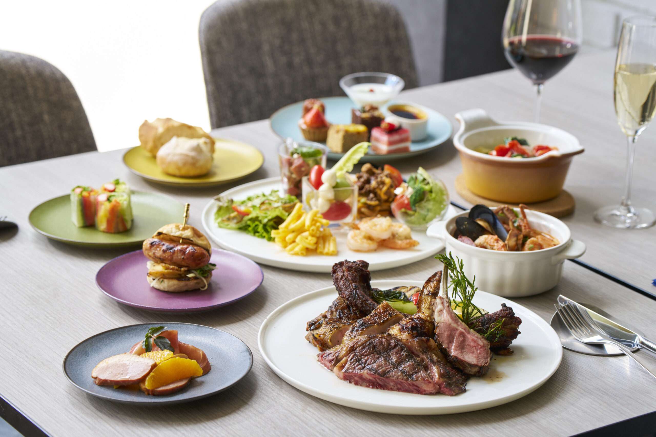 朝食サービスは、従来のハーフビュッフェスタイルから多彩なメニューを楽しめるフルビュッフェスタイルに刷新されました。ホテルメイドの焼きたてクロワッサンや炭火焼きによる3種のグリル料理など、オリジナリティあふれる新メニューが用意されています。利用は宿泊者だけでなく地元の方も可能で、料金は大人2,500円、子供(6~12歳)1,250円、5歳以下無料、営業時間は午前7時から午前10時半までです。