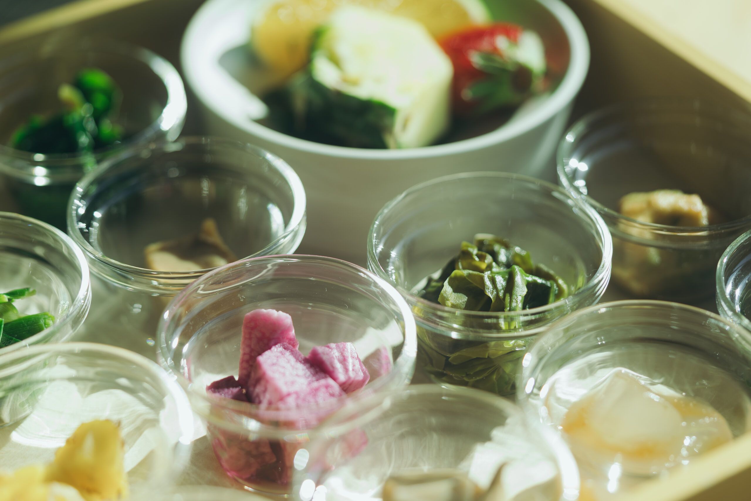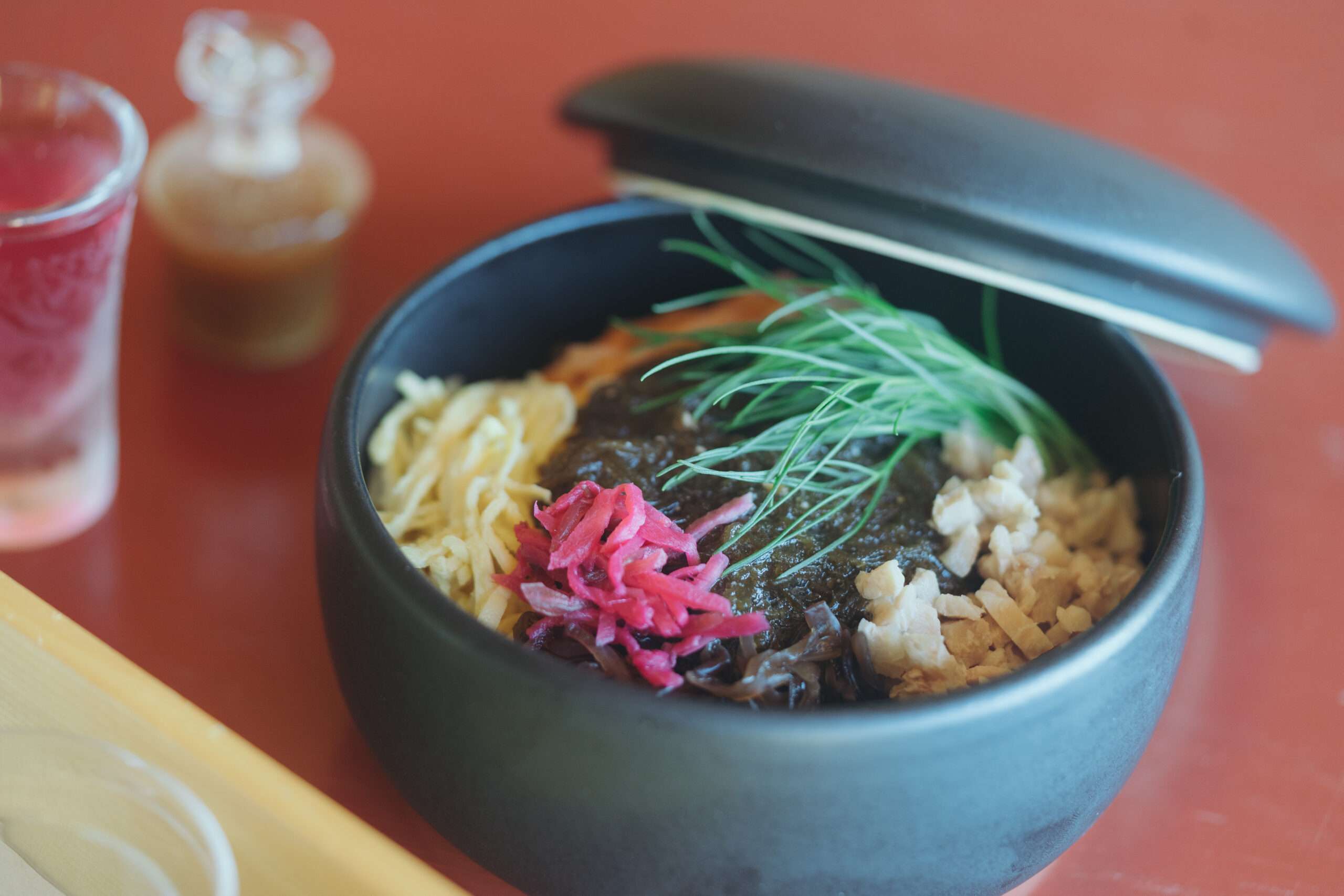 YAWN YARDは地域の食文化や自然と調和した料理を重要視し、季節ごとに島の在来野菜や海産物などを取り入れ、塩や麹を使った優しい味付けを特徴としています。朝食は琉球の宮廷料理で宴の締めに供された「菜飯」をアレンジし、ご飯の上に古宇利島産もずくや旬の食材を彩りよく盛り付け、出汁をかけて三段階の味わいで楽しめるよう工夫されています。料理長は、訪れる人の心身を整える料理を目指しており、今後も新メニューの展開を検討していると述べています。