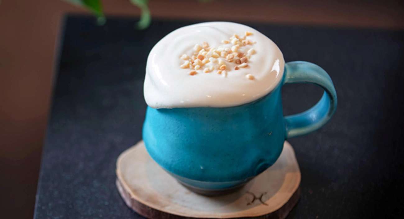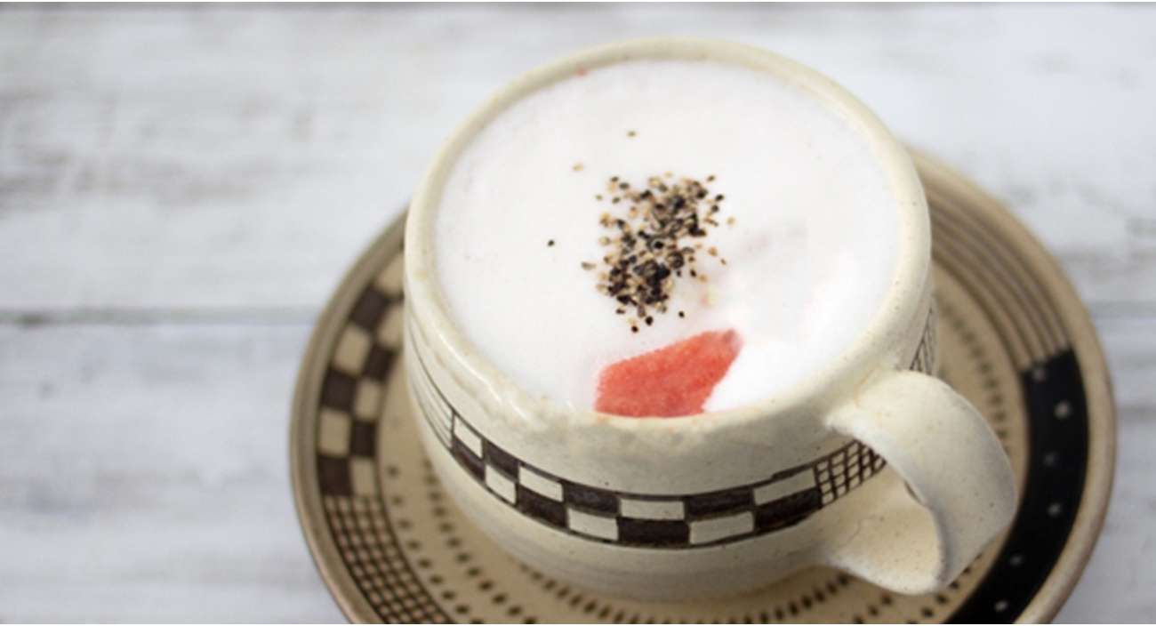 提供されるのは、沖縄のじーまーみ豆腐を使用した「沖縄じーまーみソイラテ」、伝統飲料ミキとゴーヤを合わせた「RYUKYUボタチーノ」、福岡の「博多明太子ラテ」の3種である。