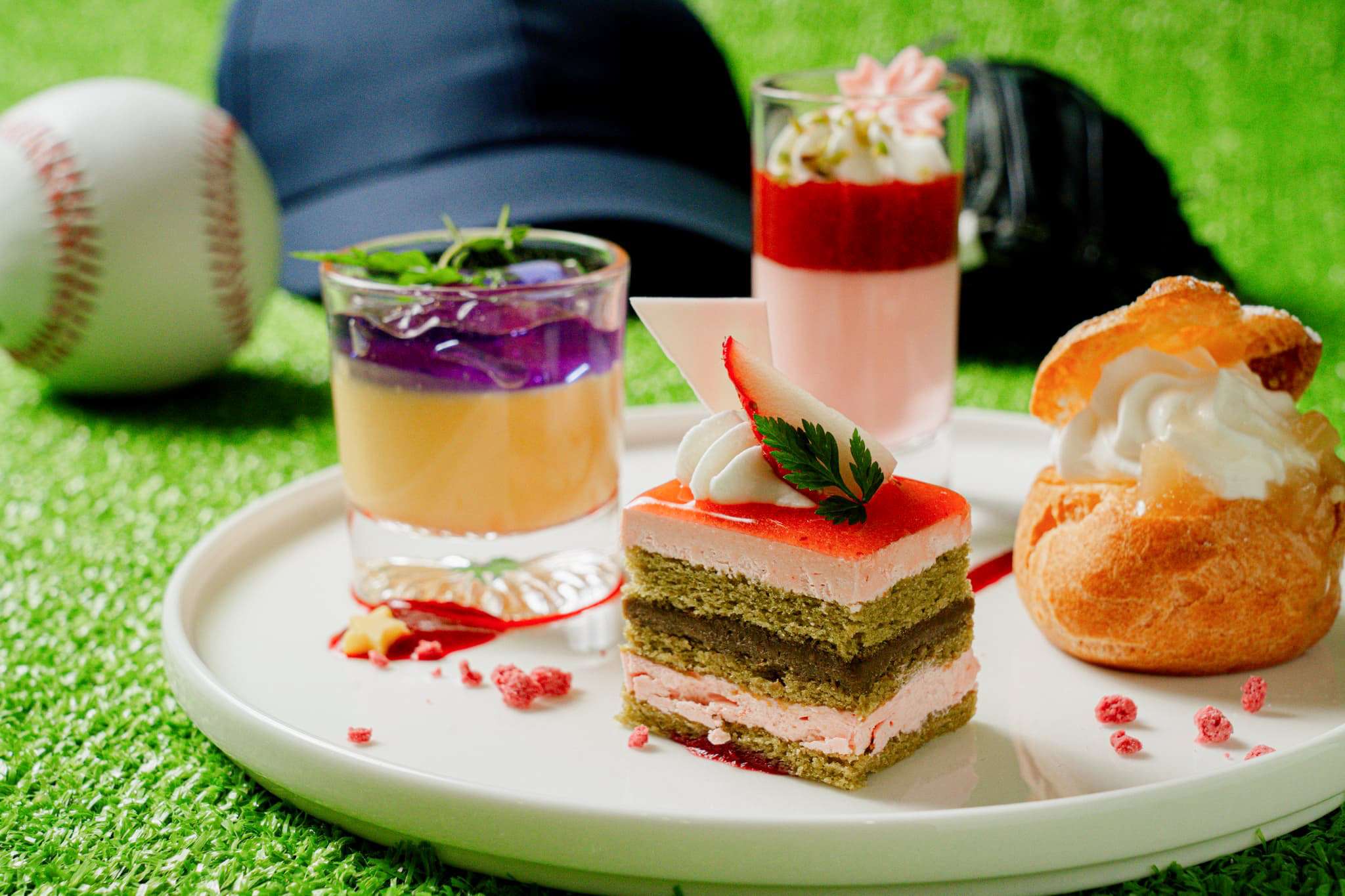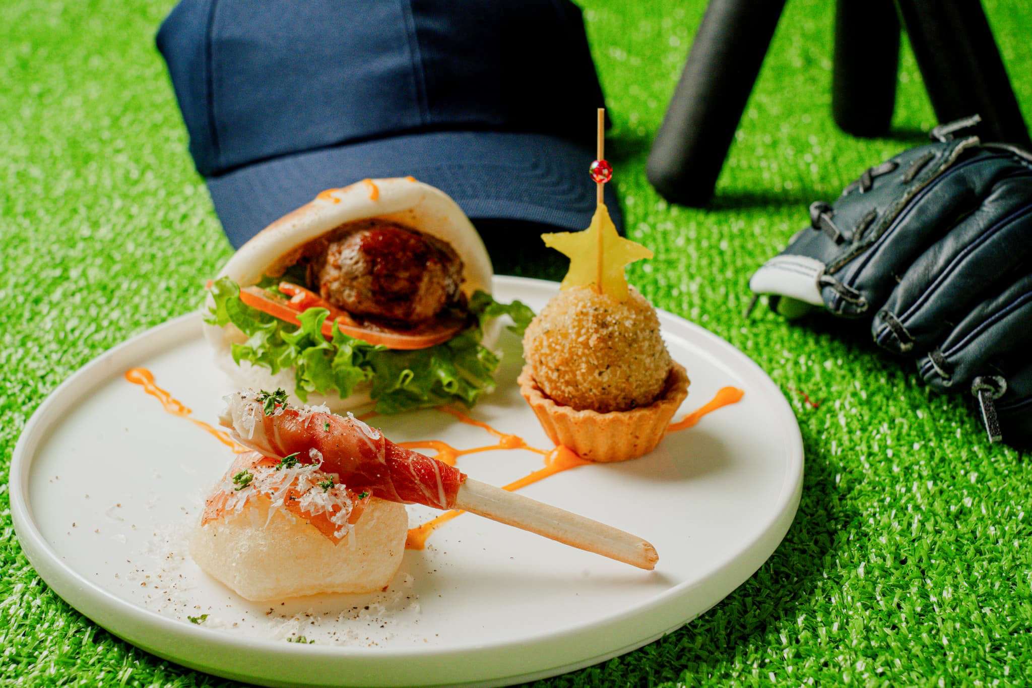 野球ボールやヘルメット、スコアボードをモチーフにした遊び心溢れるメニューが提供される。