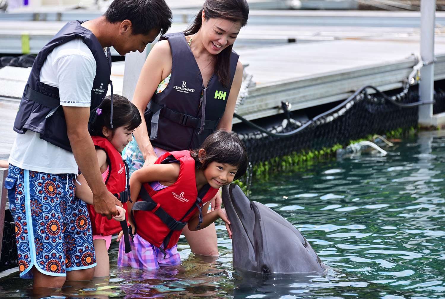 ホテル内のラグーンで実施されるドルフィンプログラムも優待対象となり、生き物とのふれあいを気軽に楽しむことが可能。