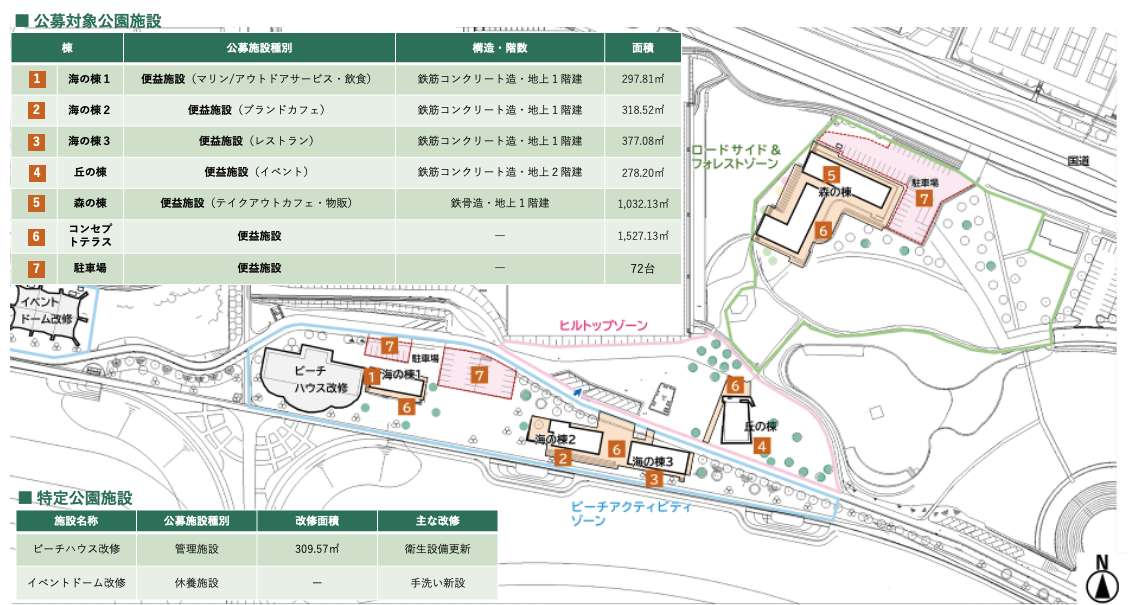 施設は2026年3月からの一部供用開始を目指しており、公募対象の各公園施設は同年4月以降に順次開業します。開発は「YAMBARU GATEWAY PARK」を構成する名護市の複数企業が担い、構造物は海沿いの「海の棟」が三棟、イベント利用可能な「丘の棟」、地域の飲食・物販を集約した「森の棟」などから構成されます。全体の設計は地元設計会社と協力し、施工は屋部土建が担当しています。