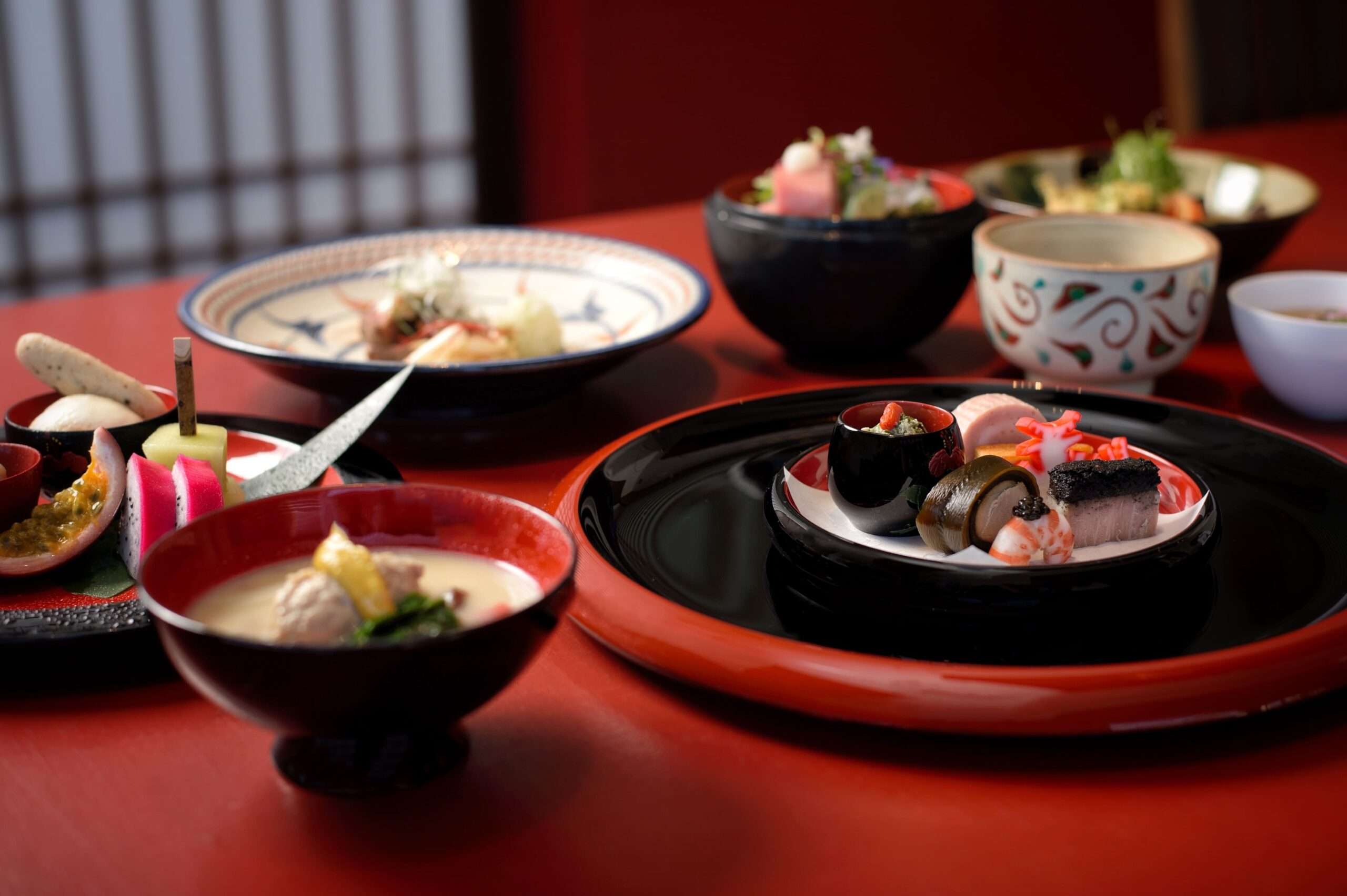 さらにホテル内のスペシャリティレストラン「シラカチ」では、恩納酒造所の代表銘柄「萬座」の古酒(クース)などを提供。炉端料理、鮨、鉄板焼き、和会席など沖縄素材と泡盛を楽しめるメニューが揃い、沖縄の食文化と泡盛の豊かな味わいを体験できます。琉球料理伝承人の資格を持つシェフの考案した琉球和会席も特色です。