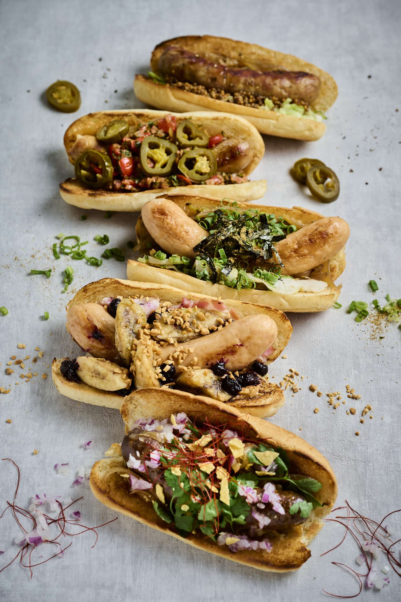 次に、全国から厳選したクラフトソーセージを使った本格的なホットドッグを5種類提供しています。祐天寺の「マルニハム」や沖縄の「TESHIO」などのメーカーのソーセージや自社オリジナルも使用。渋谷の多様な文化と個性を、各国スパイスや味わいの違いで表現し、片手で食べやすいサイズながら満足感のある味わいです。特に「ポーク×レモングラス」はビールを練り込んだビール好き必須の味わいです。