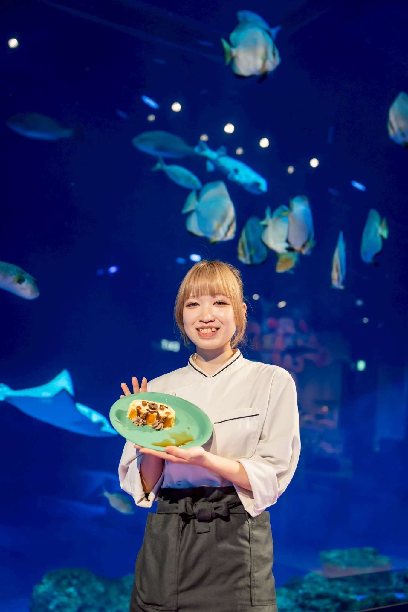福岡ホテル・ウェディング&製菓調理専門学校は合同会社DMM.comが運営するDMMかりゆし水族館(沖縄県豊見城市)との産学連携により、専門学生が開発したスイーツ「ノロロロールケーキ」を期間限定で販売した。販売期間は2025年11月22日から12月25日までで、販売場所は水族館内の「キララカフェ」、価格はイートイン限定700円(税込)。開発を担当したのはカフェ総合マネジメントコース3年生の松鼻百華さんである。