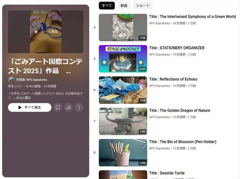 NPO法人スプラタルカ(沖縄県読谷村)は2025年10月13日、「スポーツの日」に『中学生 ごみアート国際コンテスト』の表彰式をオンラインで開催した。国内会場は読谷村文化センター、マレーシア、インドネシア、台湾の3カ国は学校内の会場から参加した。