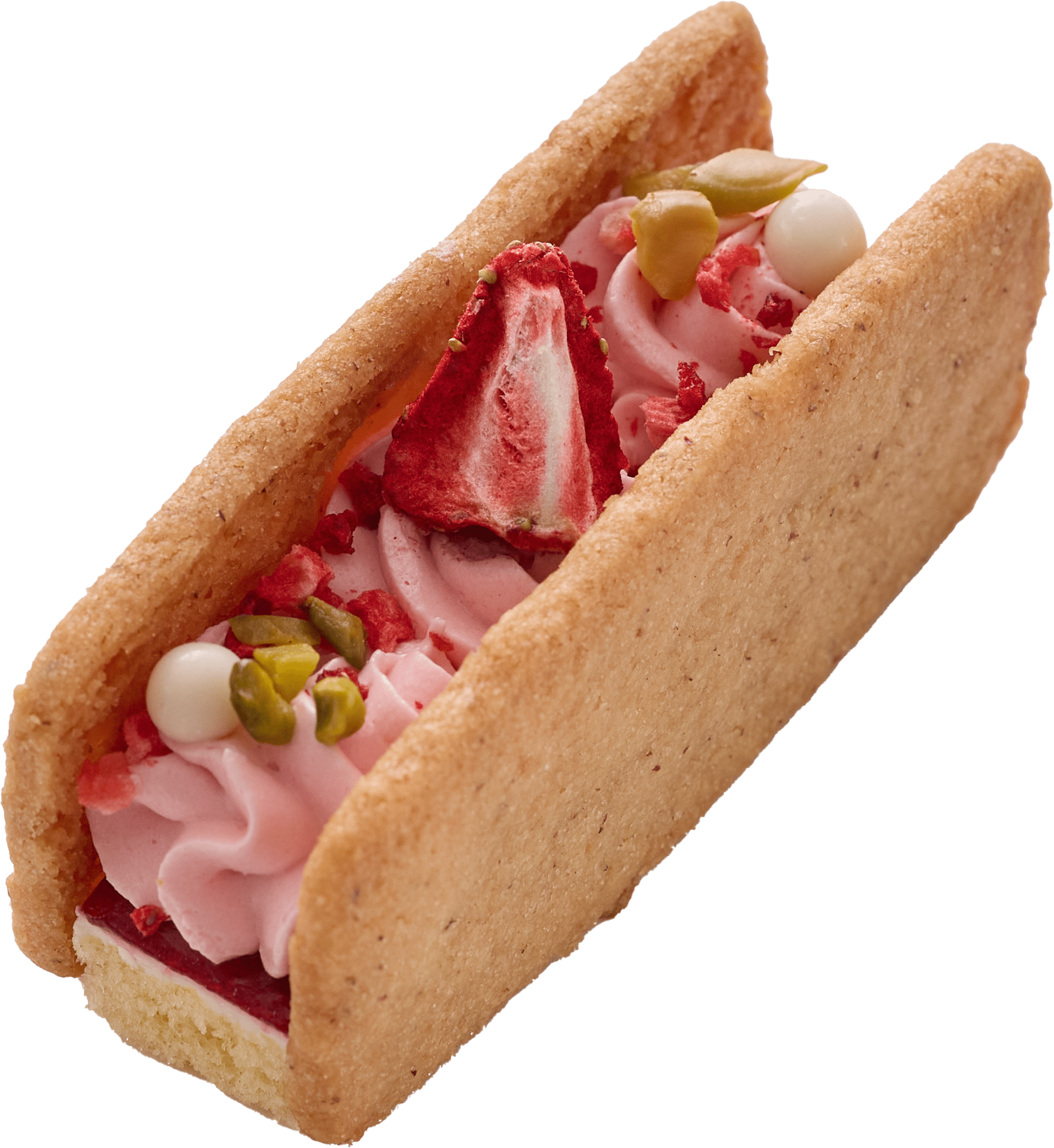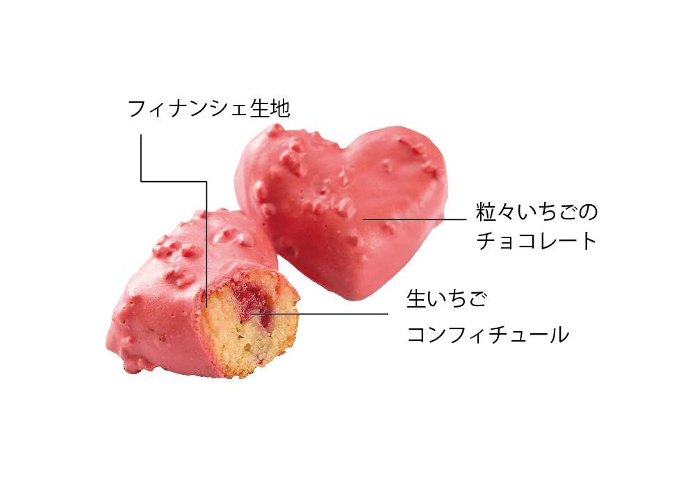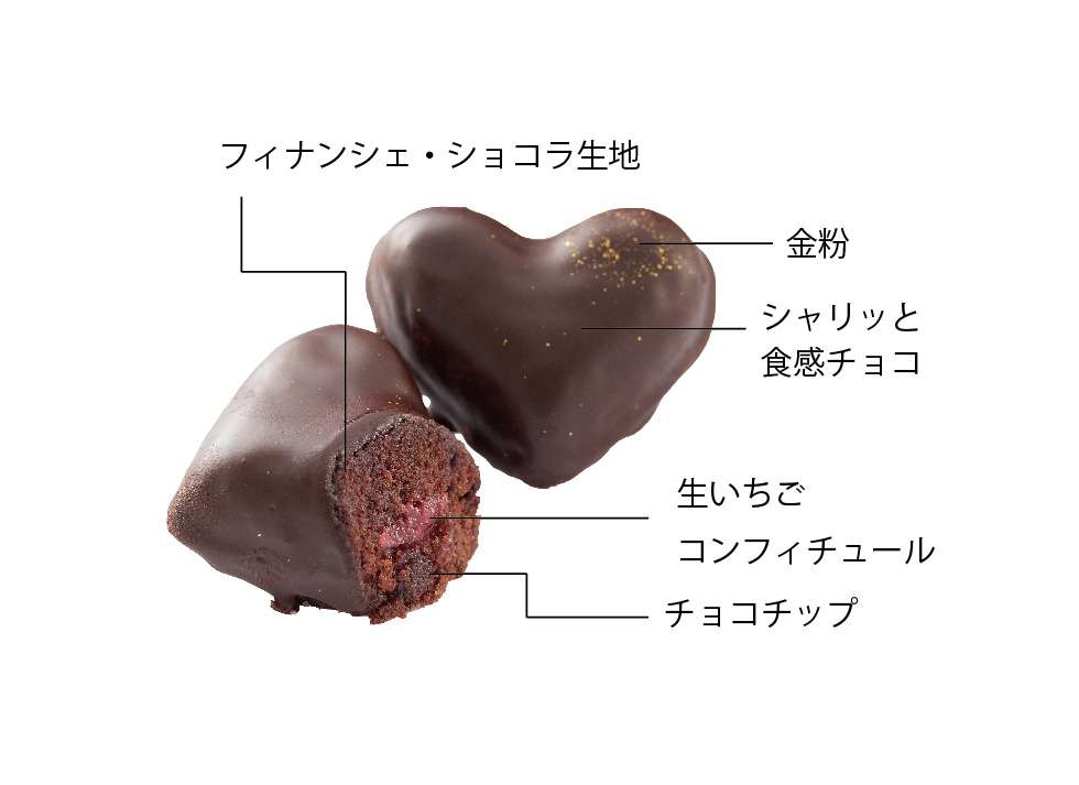 アーモンドの風味と焦がしバターが香る生地に生いちごのコンフィチュールを包み、チョコレートでコーティングした一品。