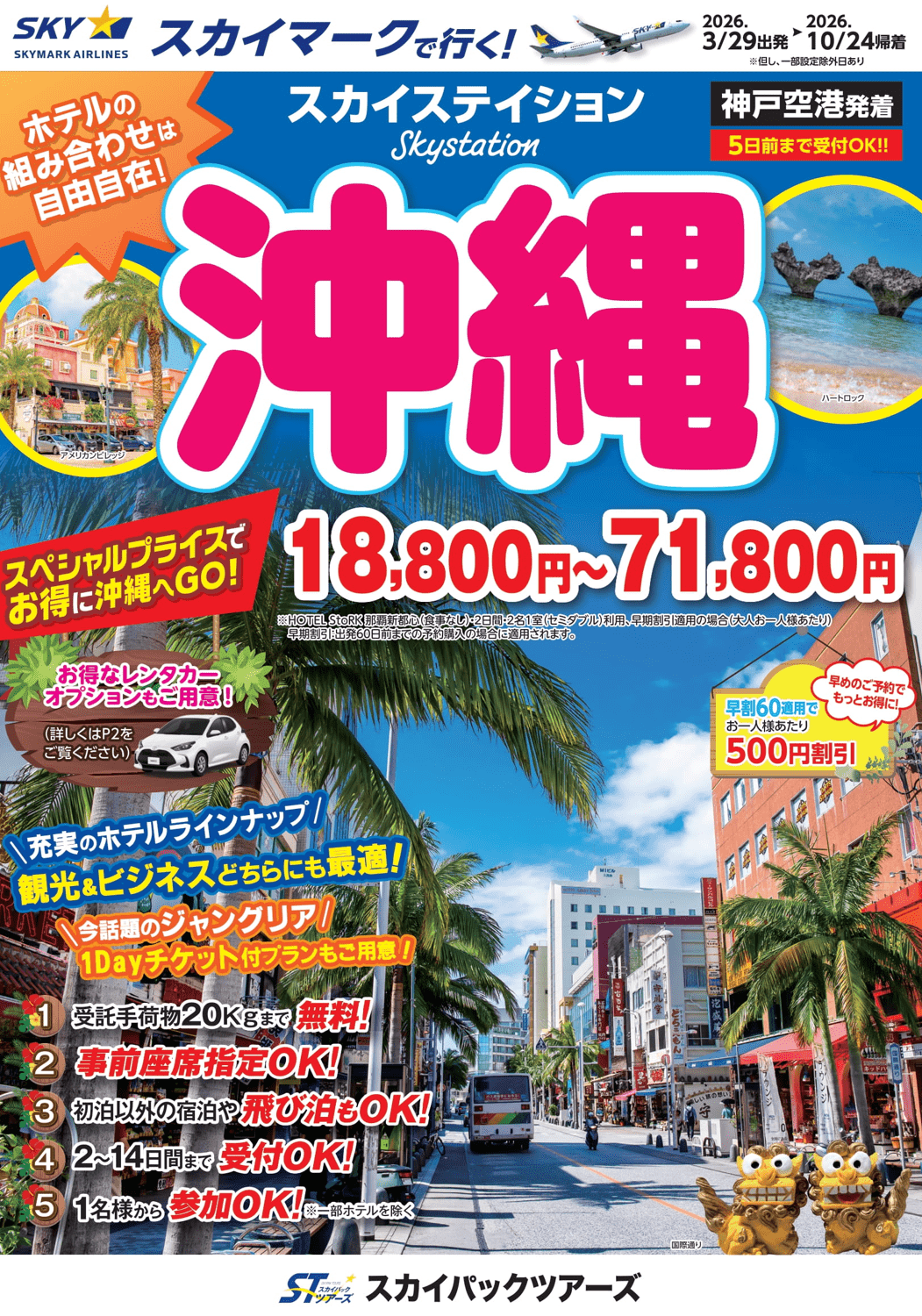 スカイパックツアーズで提供されるすべてのスカイマーク便および宿泊施設が対象となる。