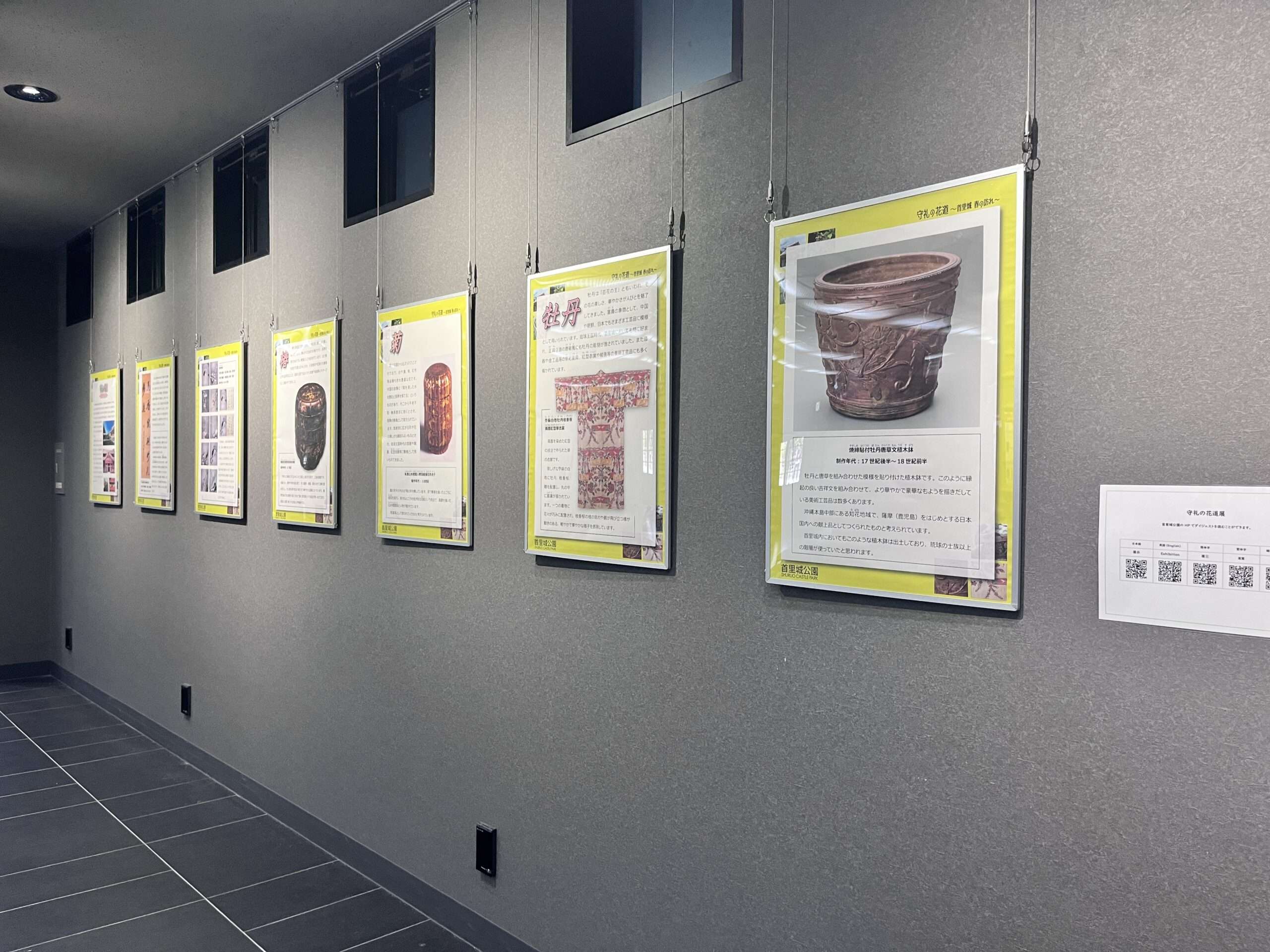 ガイダンスホールでは、琉球王国時代の工芸品に使われた植物をテーマにしたパネル展「守礼の花道」が開催される。