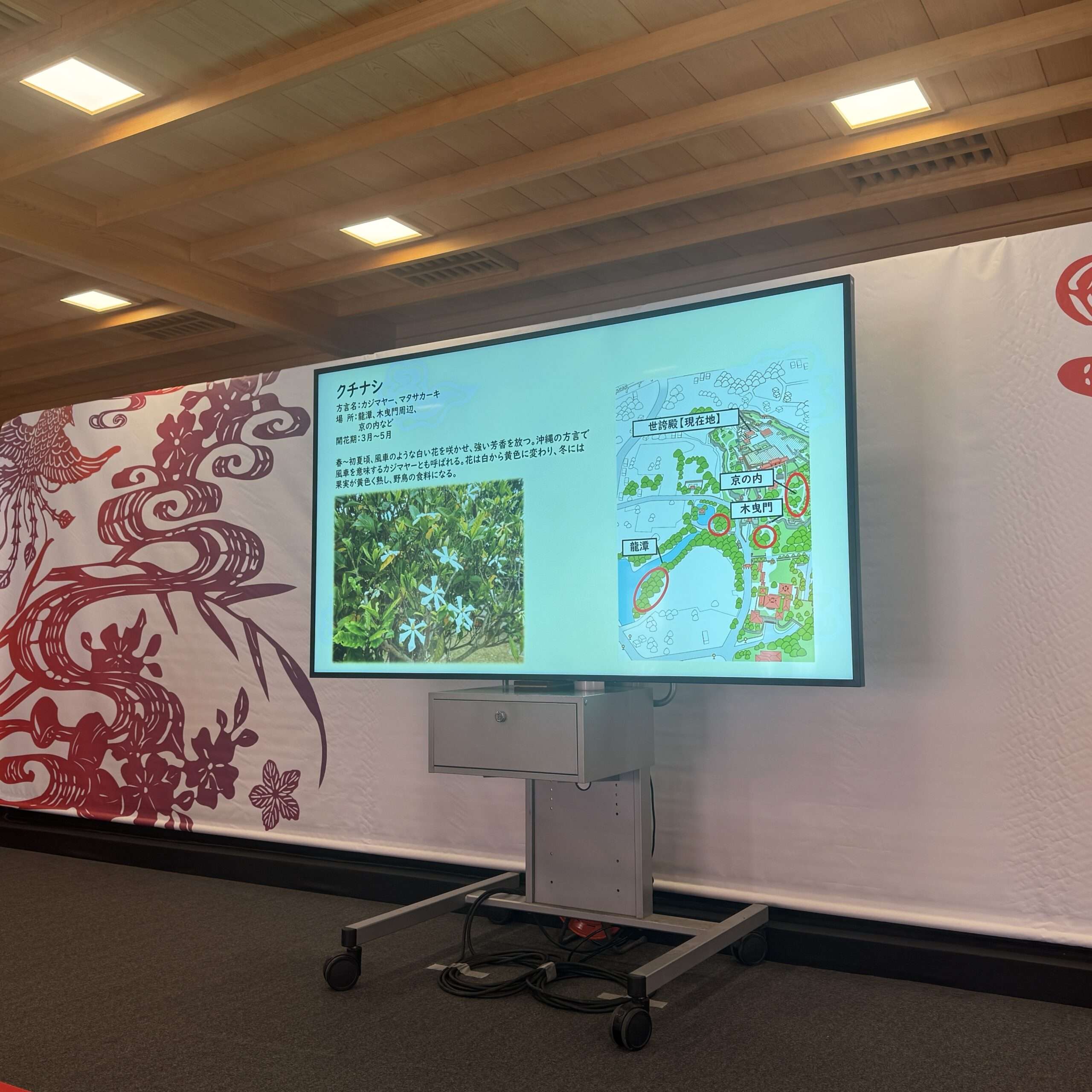 世誇殿では、園内に息づく植物の紹介や、かつて実施されていた「百人御物参」の映像が上映される。