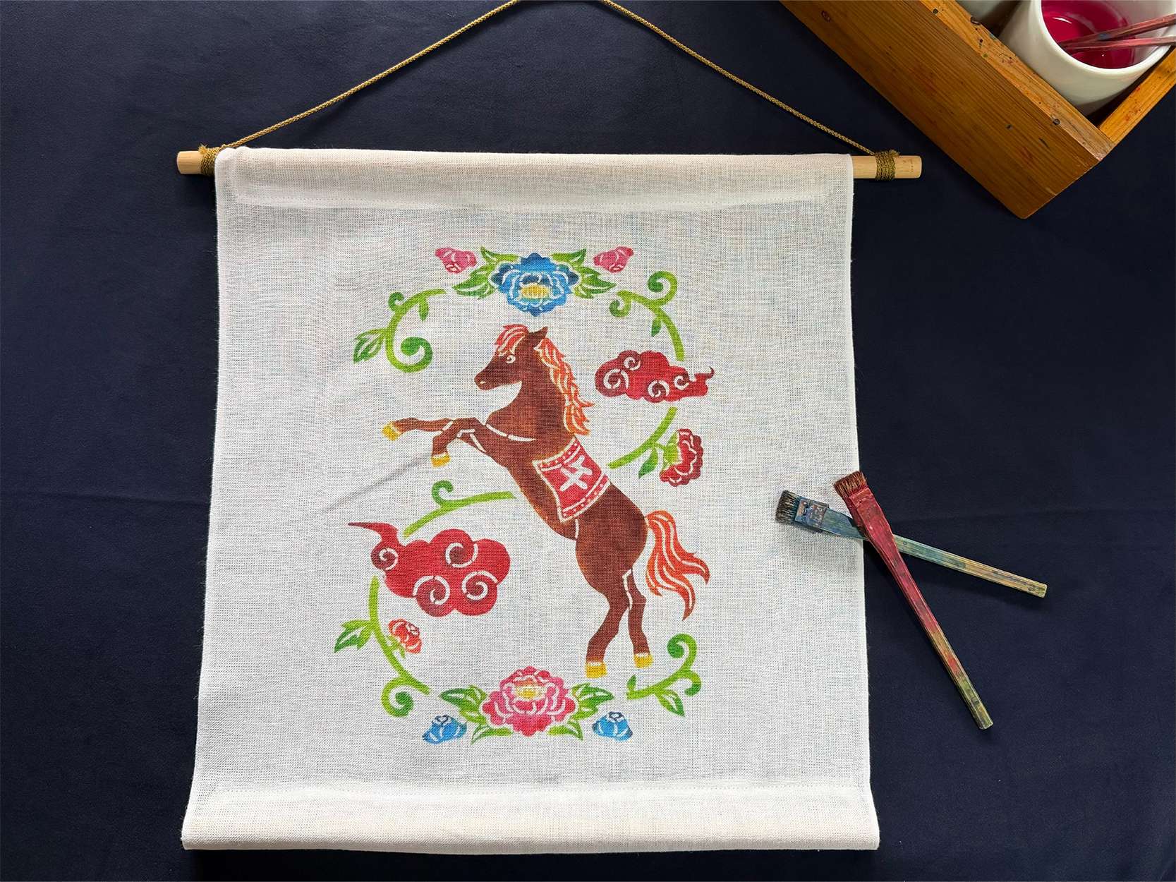 伝統工芸の紅型染め体験では、2026年の干支である「午」をデザインした限定タペストリー制作が提供される。