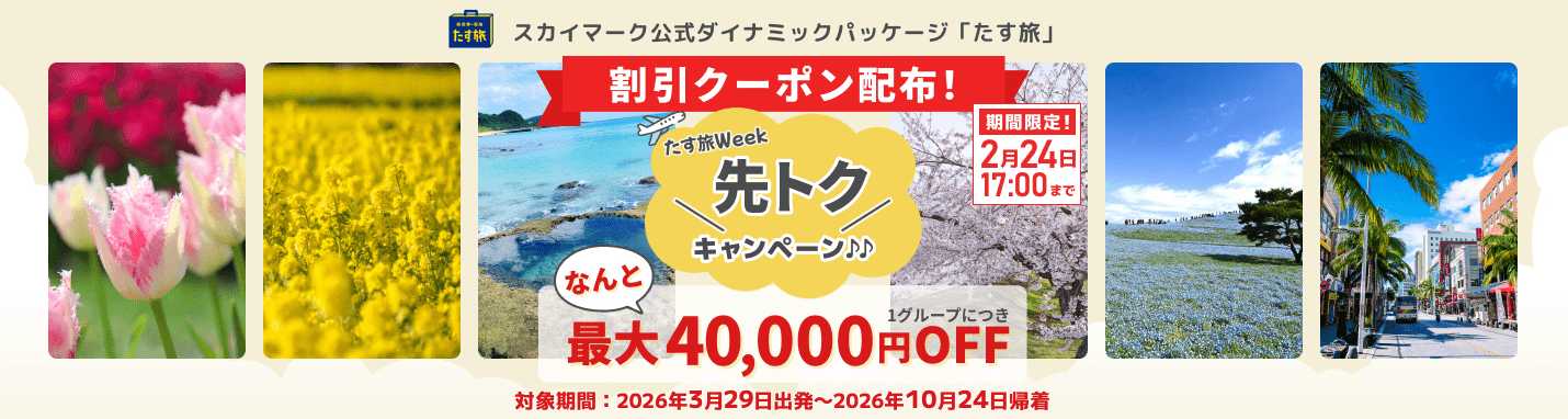 こちらは2026年10月24日帰着分まで利用可能で、最大4万円の割引クーポンが提供されている。